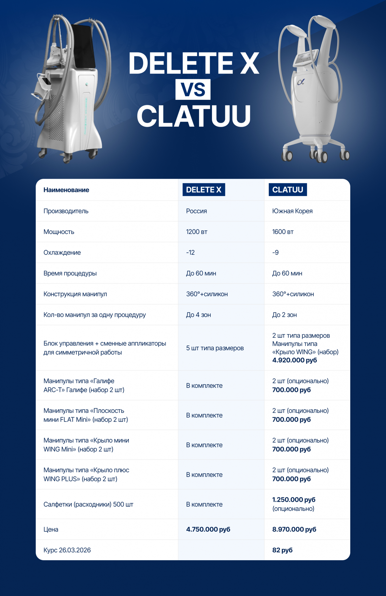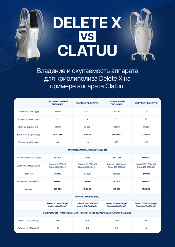 Если вы изучаете Clatuu, рекомендуем обязательно сравнить его с аппаратом Delete X. На практике именно такое сравнение помогает увидеть разницу не только в цене покупки, но и в дальнейшей экономике, условиях запуска и сопровождения.