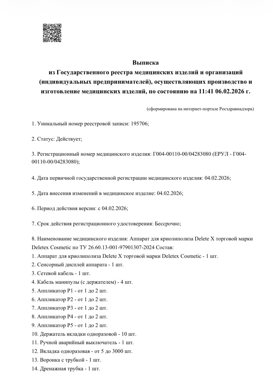 Аппарат для криолиполиза Delete X с регистрационным удостоверением